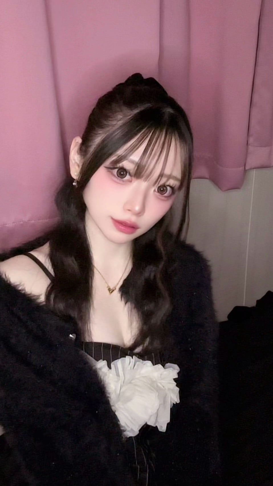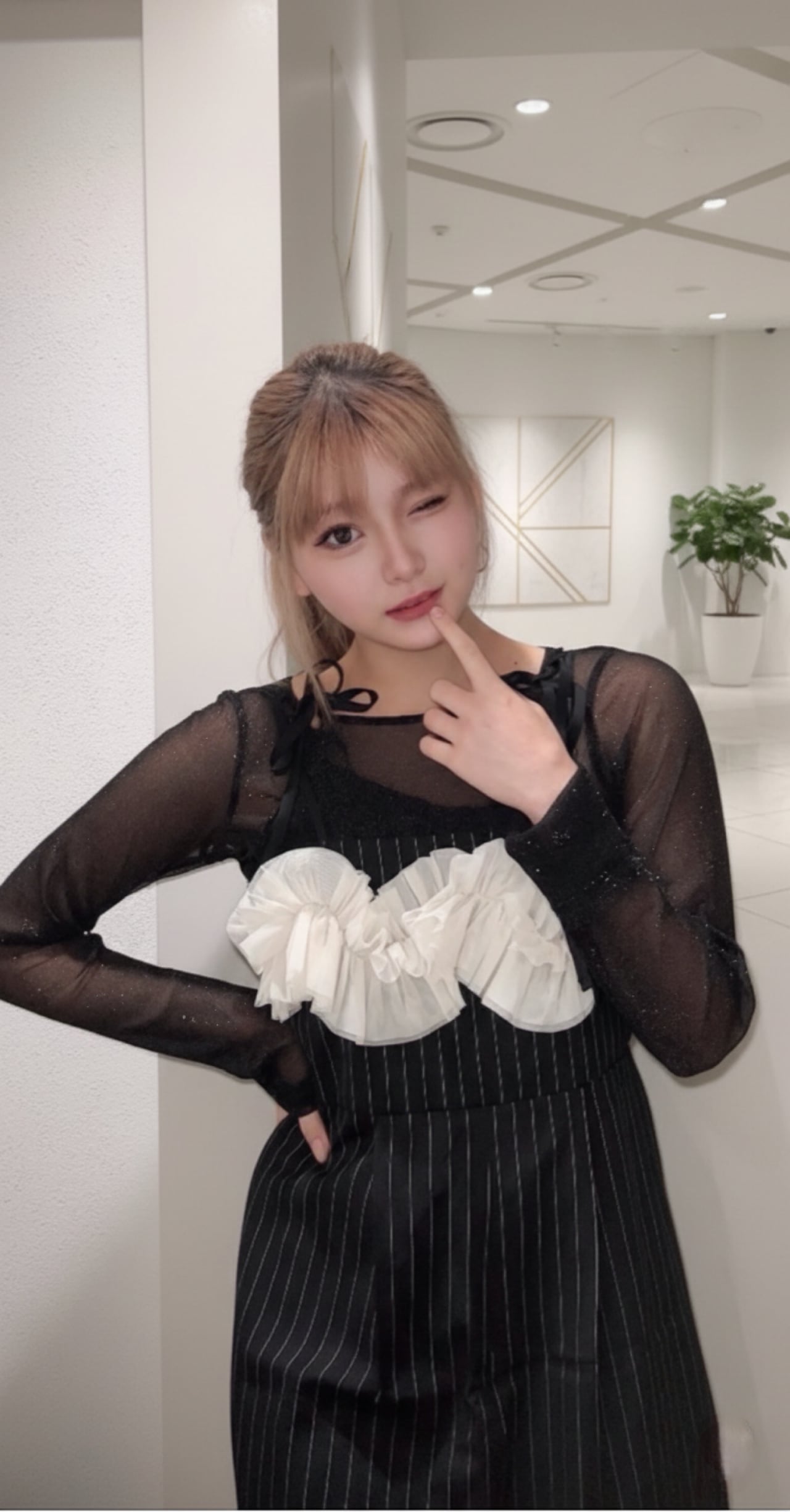チュールドッキングオールインワン(ブラック)×モヘアタッチシースルーニットトップス