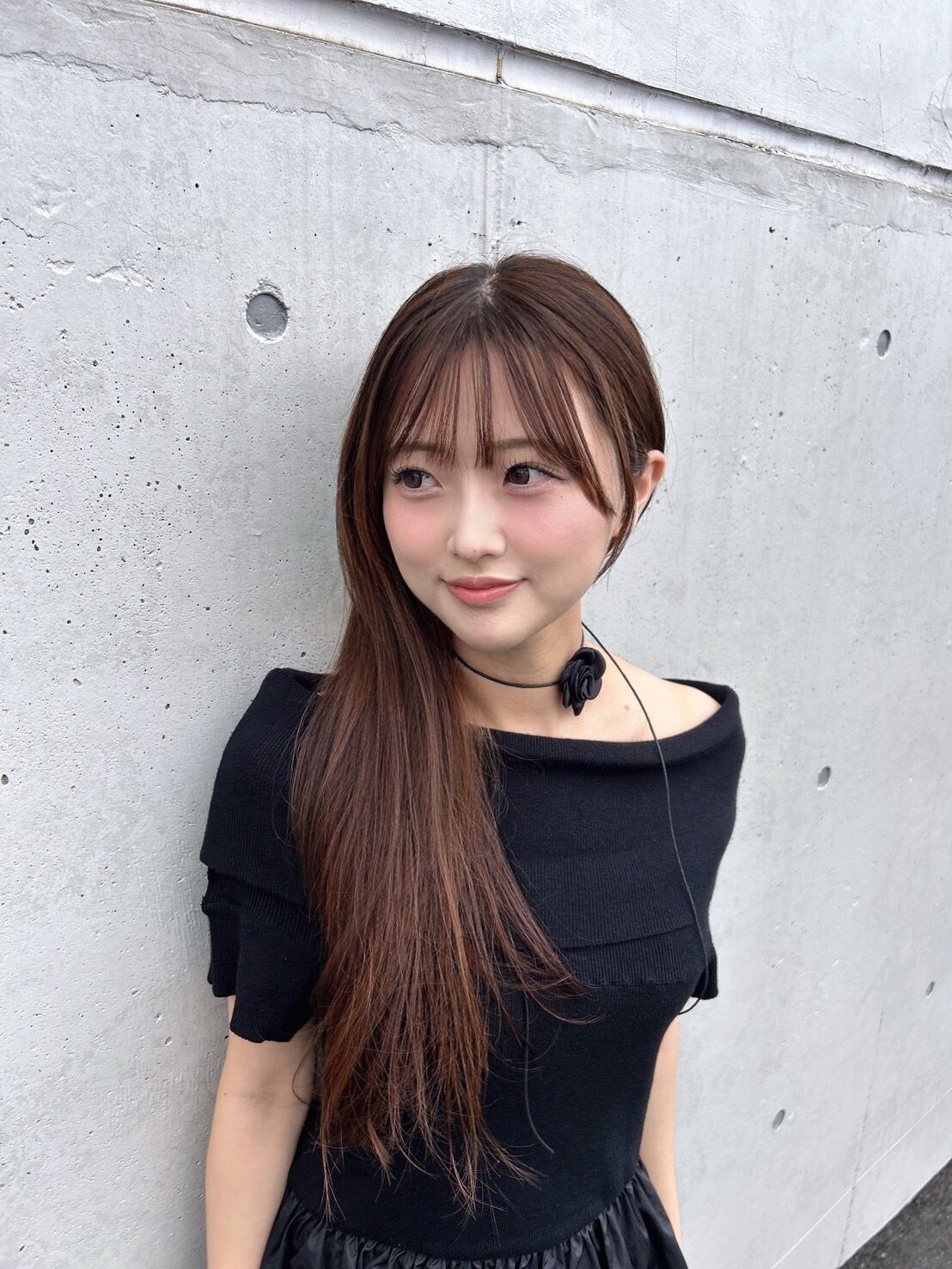 オフショルダーワンピース(ブラック)×バラチョーカー