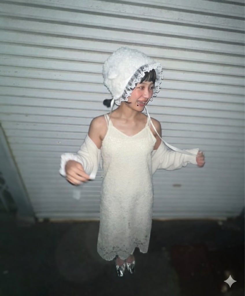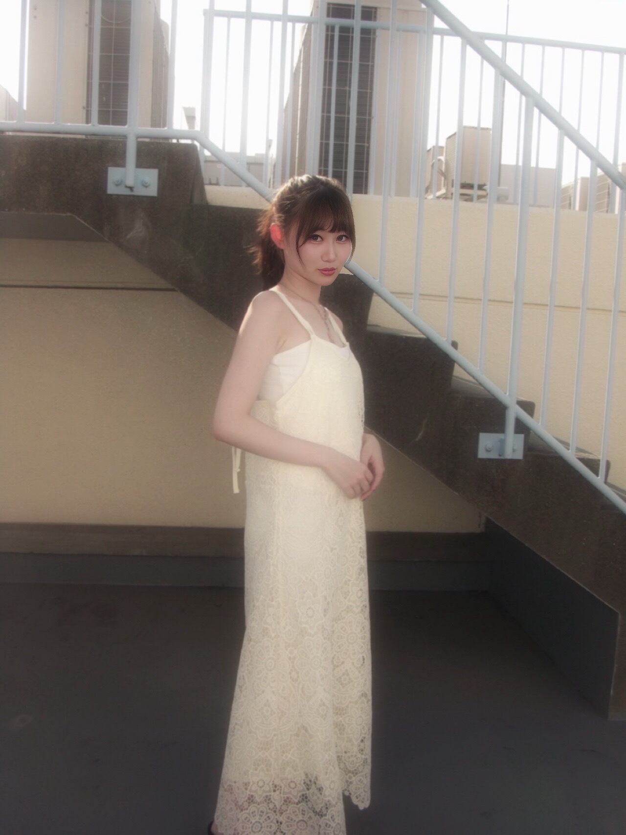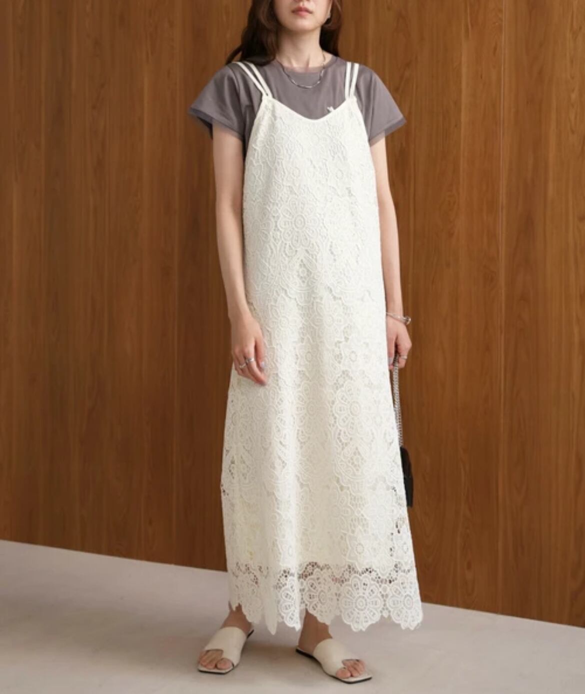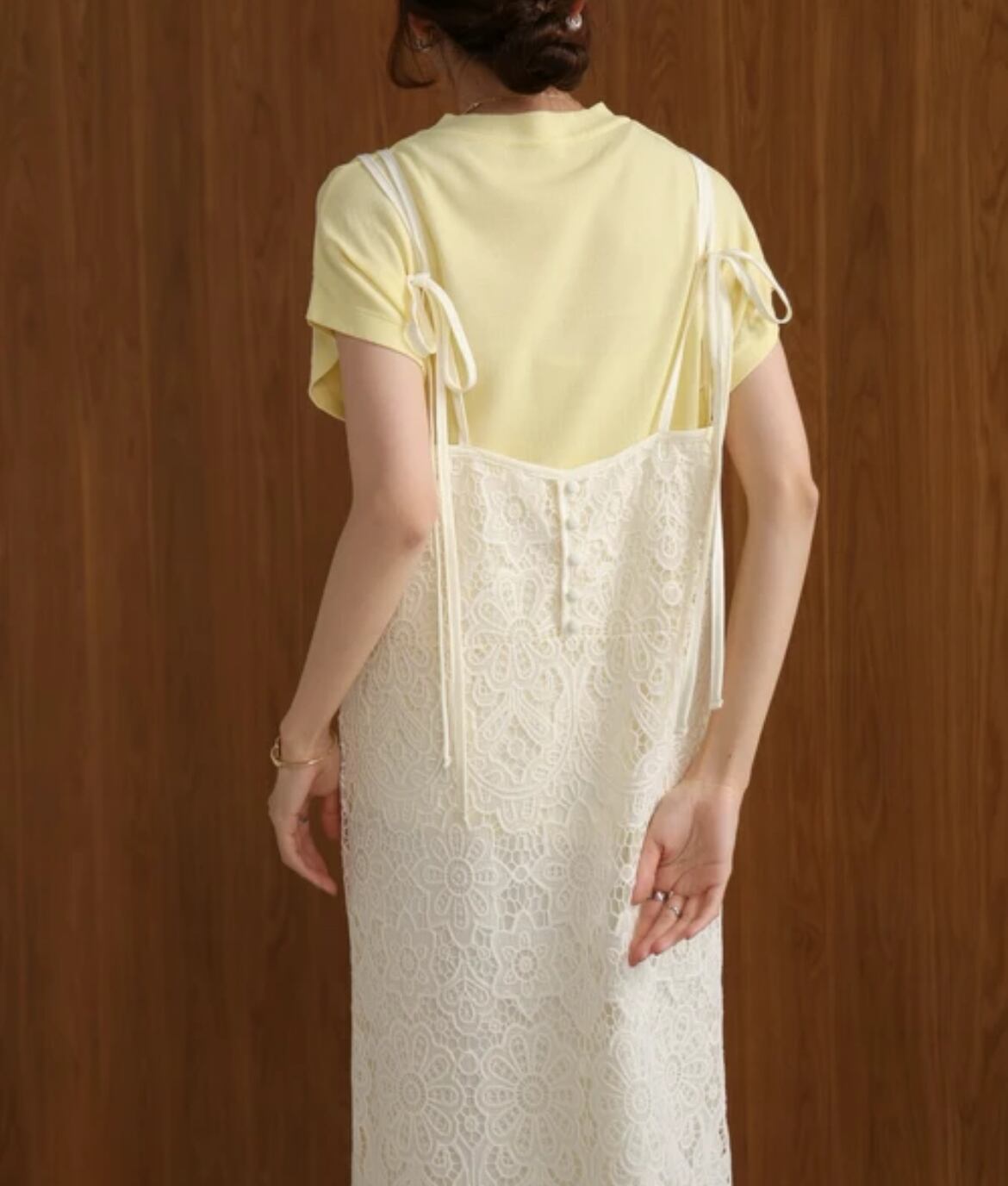刺繍バックリボンキャミワンピース(ホワイト)×パット付きキャミソール(ホワイト)