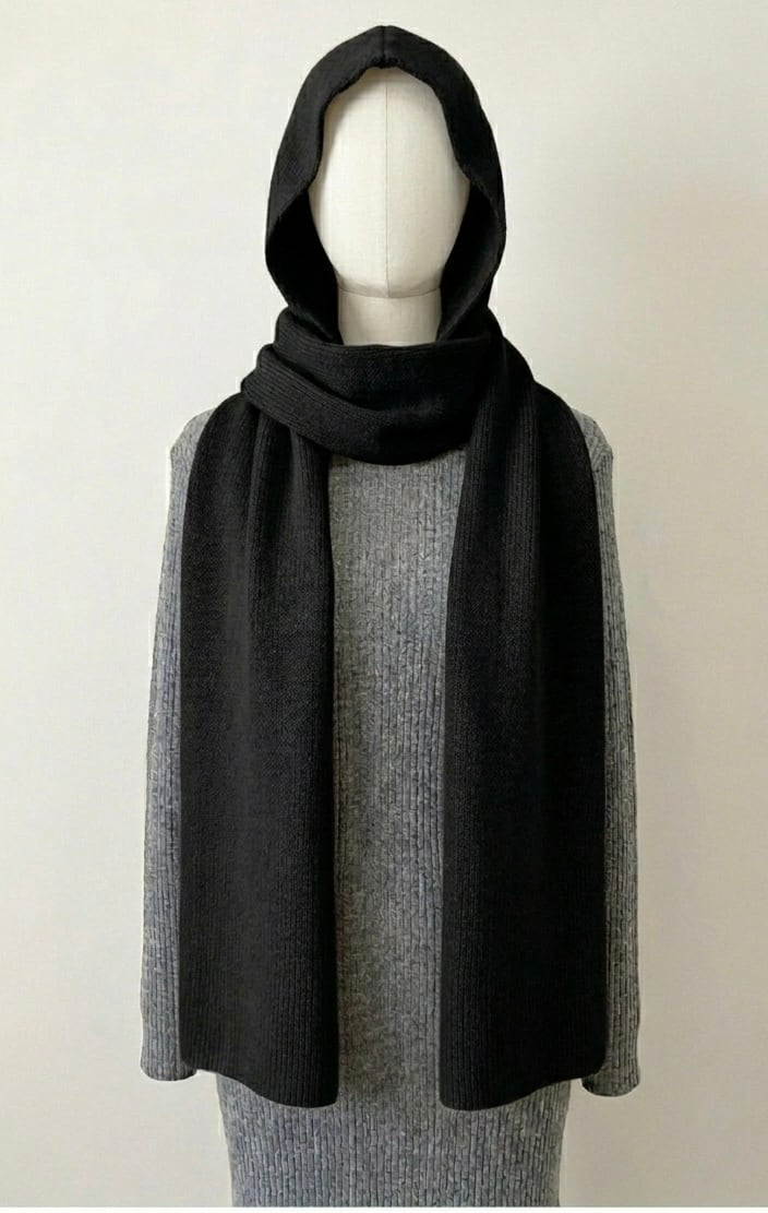 モチモチニットフード付きマフラー(ブラック)